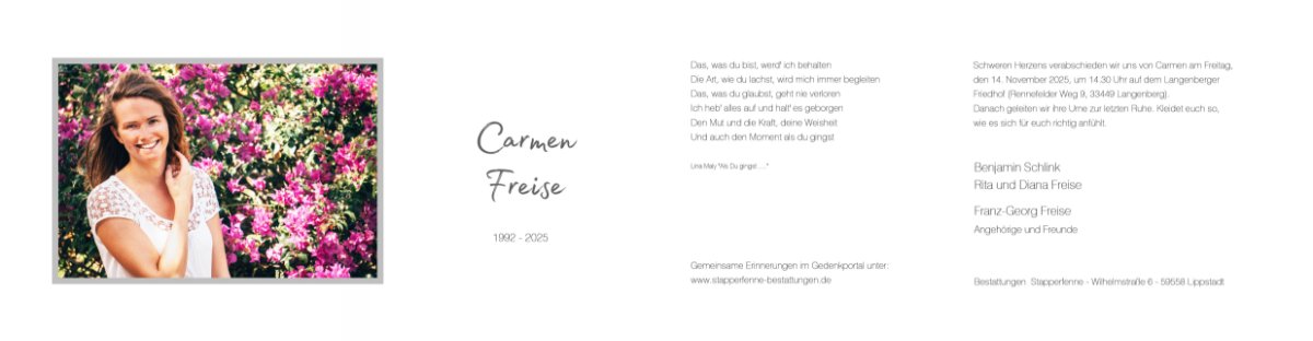 Liebe Carmen, meine erste Erinnerung an dich ist wie du in einem goldenen Kleid mit Schillerlöckchen im Kindergarten Sudhagen Karneval feierst. Ab da haben wir einige Jahre mit Rita, Diana, Leonie, Pia und Sophie etwas unternommen. Zelten beim Apelhof, Maislabyrinth, Füße baden im Haustenbach, Grillen im Zedernweg....