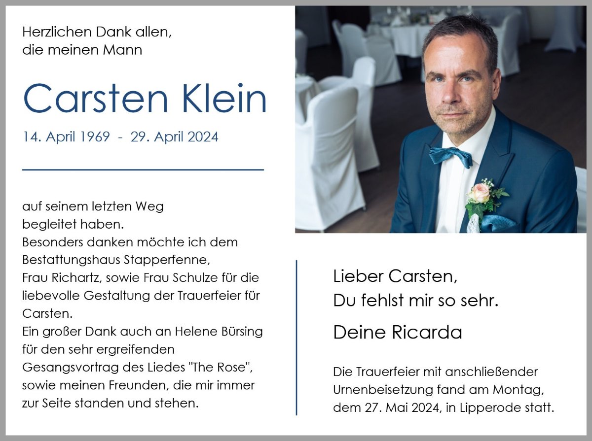 Carsten Kleingestorben am 29. April 2024